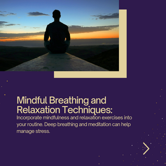 Mindful Breathing and Relaxation Techniques: Incorporate mindfulness and relaxation exercises into your routine. Deep breathing and meditation can help manage stress.